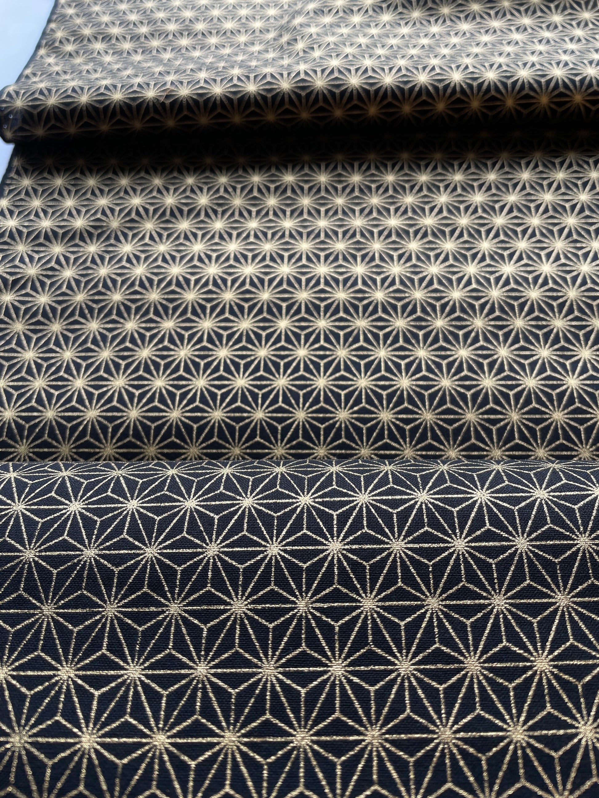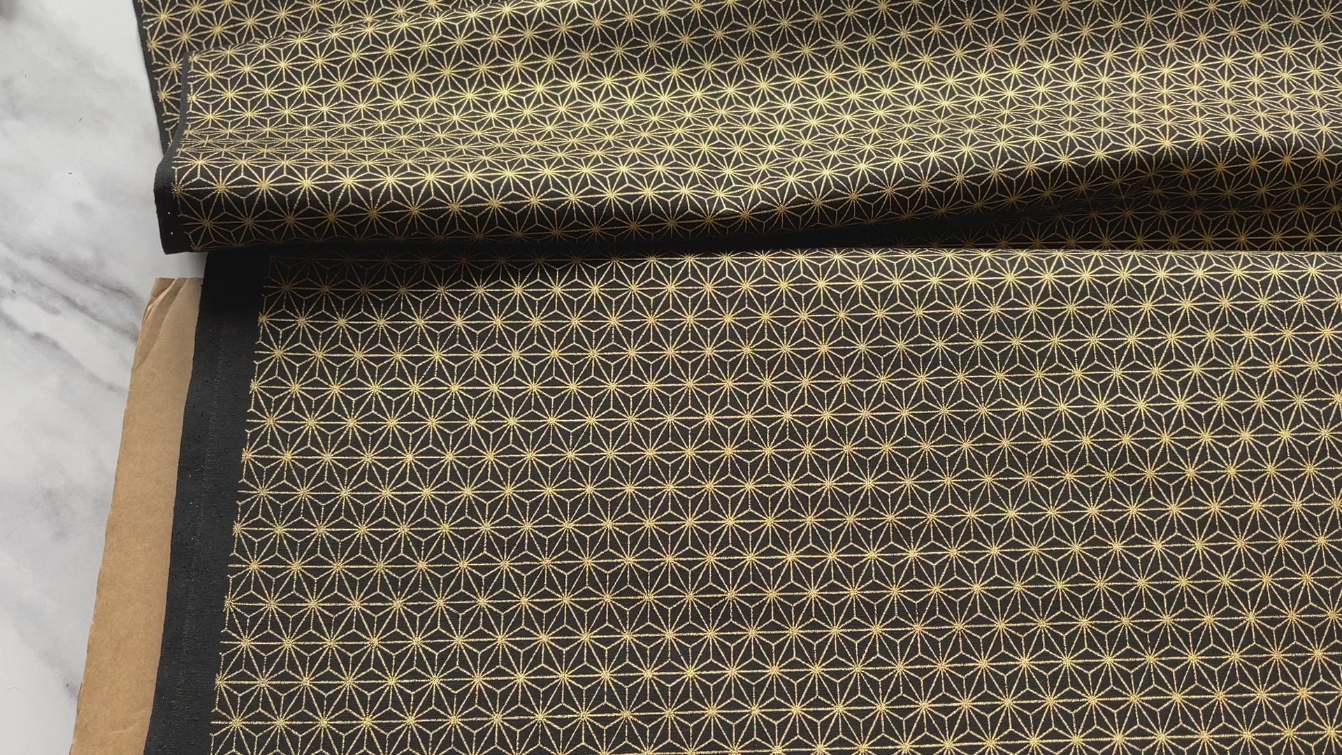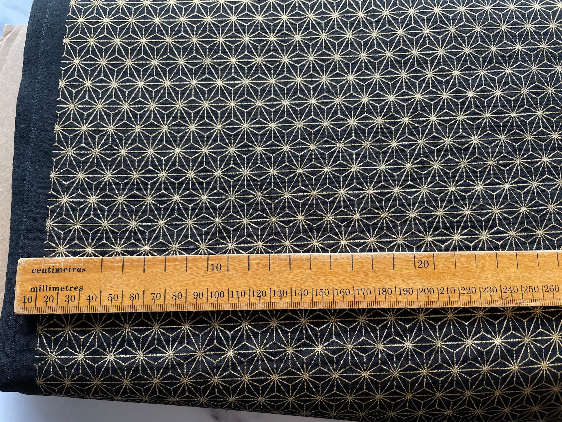 Make a statement with this luxurious fabric that shimmers and shines with every movement. It's 100% cotton making it easy to sew, and suitable for beginners. The fabric is called Yakata and features metallic gold 3D geometric stars on a black background.