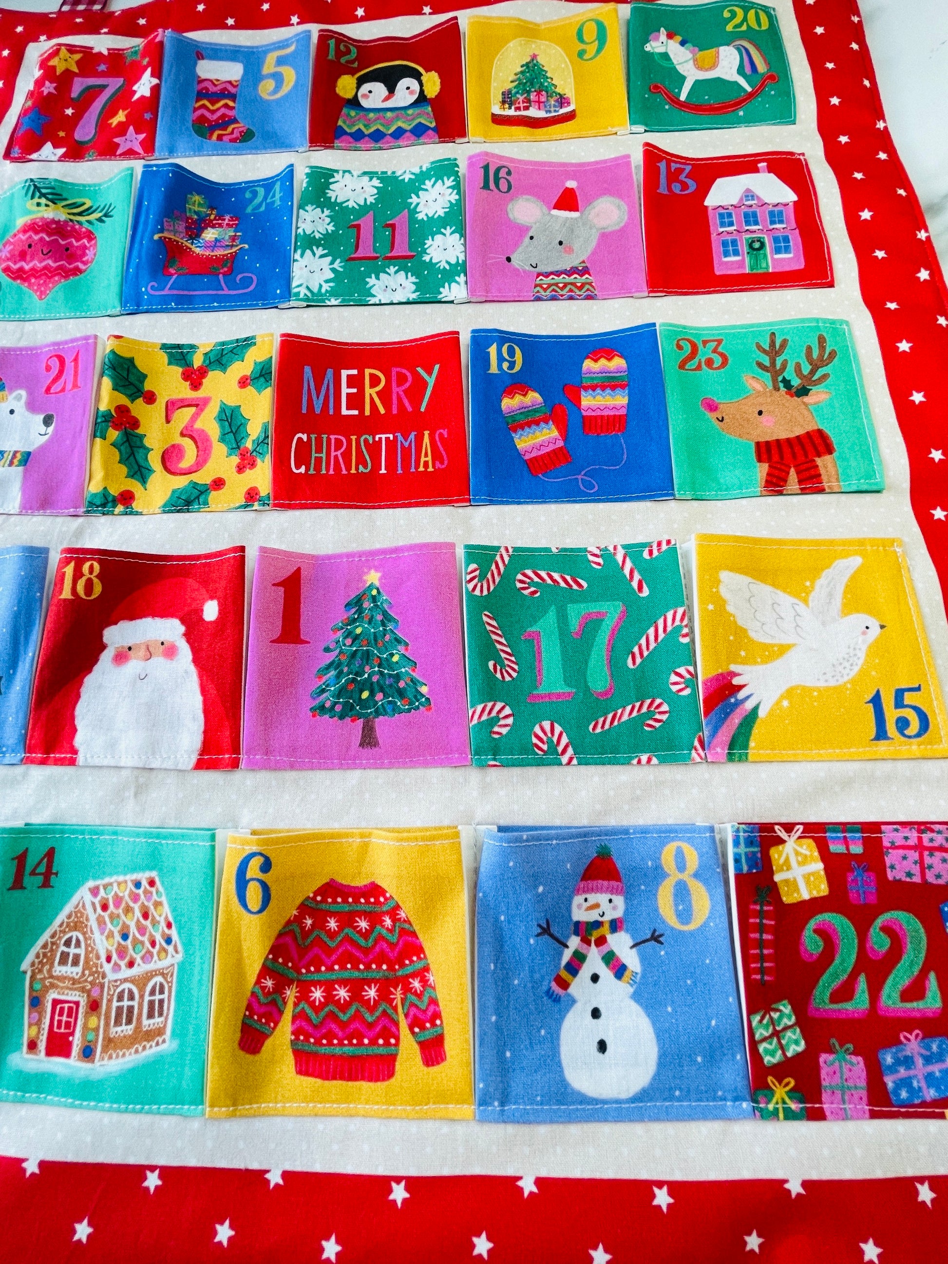 Bring the joy of Christmas into your home with this delightful Bright & Jolly fabric advent calendar! Crafted from the beautiful Dashwood Studio Bright & Jolly advent panel, this advent calendar is a festive and sustainable way to countdown to Christmas.